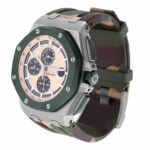 This Audemars Piguet Royal Oak 26400SO.OO.A054CA.01 replica watch is a perfect 1:1 clone of the original. It features a 904L stainless steel case and bezel, with a sapphire crystal and a 44.00 mm size and 14.04 mm thickness. The green rubber bracelet is adjustable for all sizes and has a 904L stainless steel AP pin buckle. The champagne dial has stick and dot indices, 904L stainless steel Royal Oak hour-marker, and stick hands. It has an automatic AP 3126/3840 movement with a 60-hour power reserve and a precision of (-3/+3 sec/day) within COSC certification limits. The watch has passed the 30m water resistance test and is under a full 2-year international United Luxury warranty.This watch is a perfect clone of the original, with all the same markings, writings, thickness, size, and powerful movement and caliber. Not even your jeweler can tell the difference! For Japanese mechanism watches, materials and movements may differ from the Swiss mechanism watches, so please contact our support team for more information and videos.
