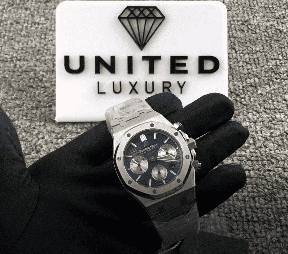 The dial is a blue Grande Tapisserie with stick/dot indices and Royal Oak hour-markers. The hands are 904L stainless steel sticks. The watch has passed the 30m water resistance test and is protected by a full 2 year International United Luxury warranty. It is a perfect 1:1 super clone Swiss mechanism watch that even your jeweler won??t be able to tell the difference.