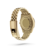 The watch is paired with a robust yellow gold Oyster bracelet, celebrated for its durability and comfort. It features a folding Oysterlock clasp and an Easylink comfort extension link, enabling the wearer to adjust the bracelet length by up to 5 mm for a flawless fit.