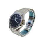 The Royal Oak Selfwinding Replica from Audemars Piguet is a striking watch. It features a 904L stainless steel case and bezel, with a sapphire crystal and a black grande tapisserie dial. The movement is an automatic AP 4302 caliber with a power reserve of 60 hours and a precision of (-3/+3 sec/day) within COSC certification limits. The bracelet is a 904L stainless steel Royal Oak bracelet with adjustable links and a 904L stainless steel AP folding clasp.